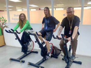 Building on the success of the group walk, individual colleges also hosted a variety of activities to continue the fundraising efforts. At Bridgwater College, staff and students took part in a “4 Bikes, 4 Hours” cycling challenge, collectively covering 98.3km on spin bikes.